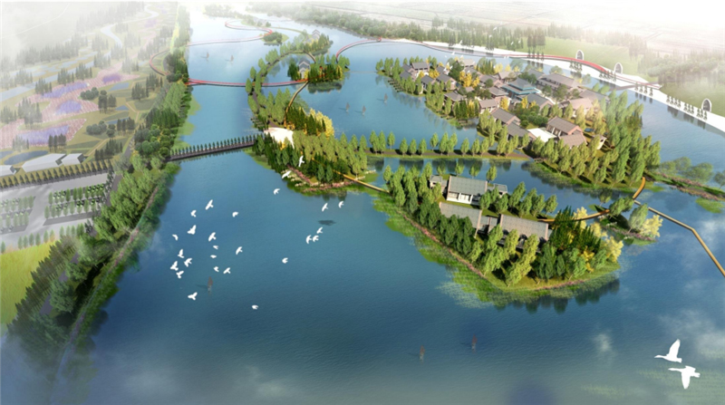 工程內(nèi)容包含:現(xiàn)狀湖區(qū)擴挖、深挖及防滲處理;②景觀人工島、湖區(qū)濕地島群;③東西湖沉砂設施;④湖區(qū)橋梁、凌空棧道;⑤ 石堤河引洪渠砌護;⑥石堤河、羅汶河液壓壩;⑦湖堤路路基工程;⑧涉水景觀綠化、碼頭、棧道等工程;⑨水土保持、環(huán)境保護等其他工程。
