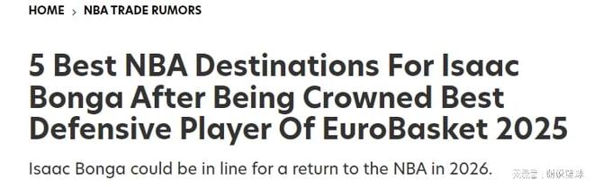 顯然跟其他人一樣,這位25歲的鐵閘,也盼望有朝一日重返NBA聯(lián)盟,畢竟這是所有職業(yè)球員終極夢想。而媒體撰寫了一篇長文,直言回到湖人是艾薩克-邦加潛在選項,此外包括勇士和馬刺等隊,同樣也很適合他。