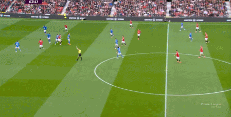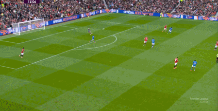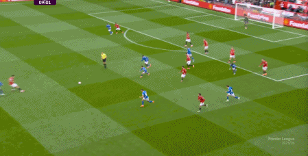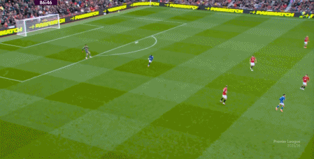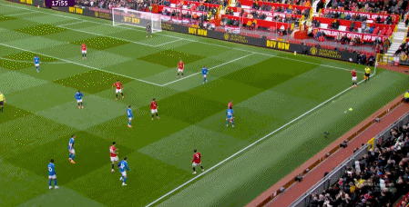 于是在第8分鐘,曼聯(lián)就再次利用到了343打四后衛(wèi)球隊(duì)的體系優(yōu)勢(shì),阿瑪?shù)?迪亞洛進(jìn)入空位得球: