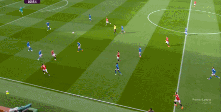 比如這個(gè)右路的4防3,達(dá)洛特和盧克-肖兩人撲一點(diǎn),布魯諾和芒特都沒(méi)有注意到身后空間: