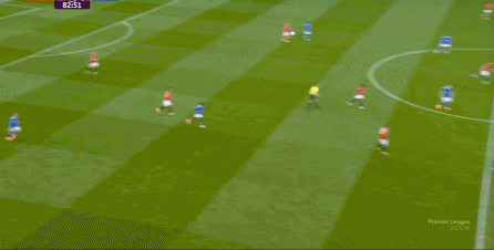 在過(guò)程中可以看到,對(duì)手打出威脅的關(guān)鍵點(diǎn)是又突破了盧克-肖的防守,鍋是他的跑不掉,但在這之前,盧克-肖已經(jīng)在防范對(duì)手在中路的接球了: