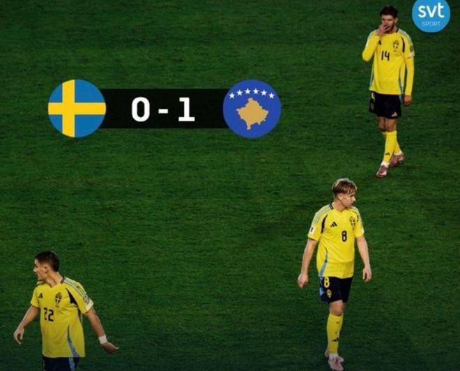 但是,比賽的過程讓人大跌眼鏡。瑞典隊控球率高達68%,射門13次,4次射正,這三個數(shù)據(jù)都高于對手。瑞典隊的進攻效率太差,始終無法破門。反觀科索沃,只有32%的控球率,卻在第32分鐘由阿斯拉尼一擊致命。